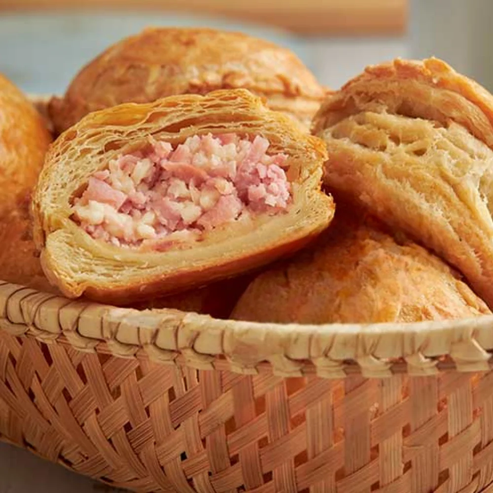 Delicioso hojaldre francés relleno de jamón y queso.